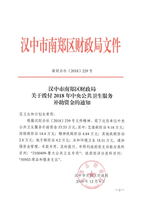 南财办社〔2018〕229号,关于拨付2018年中央公共卫生服务补助资金的通知