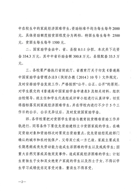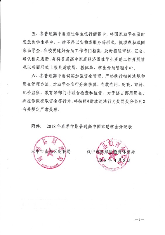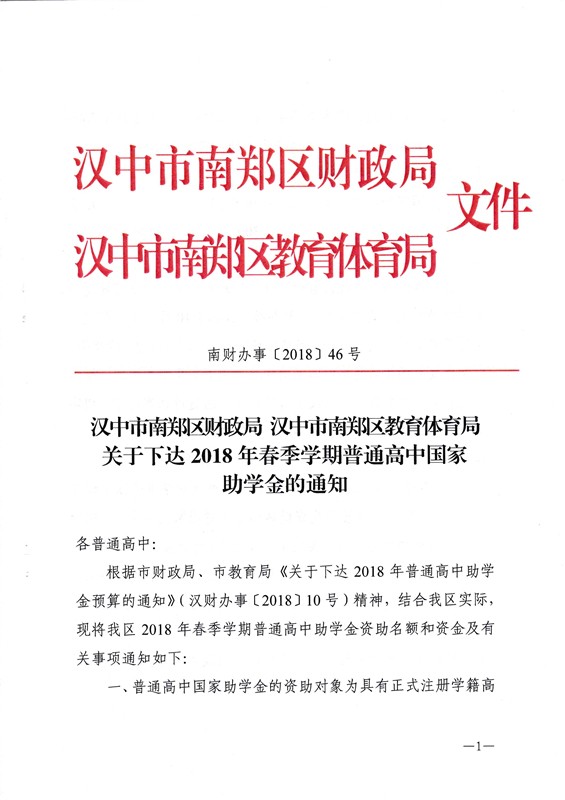 南财办事〔2018〕46号 关于下达2018年春季学期普通高中国家助学金的通知