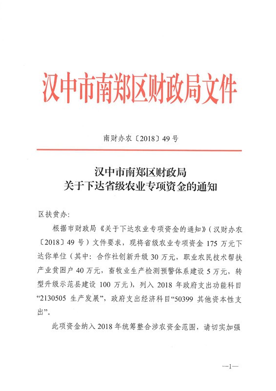南财办农〔2018〕49号 关于下达省级农业专项资金的通知