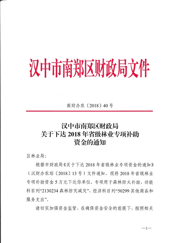 南财办农【2018】40号关于下达2018年省级林业专项补助资金的通知