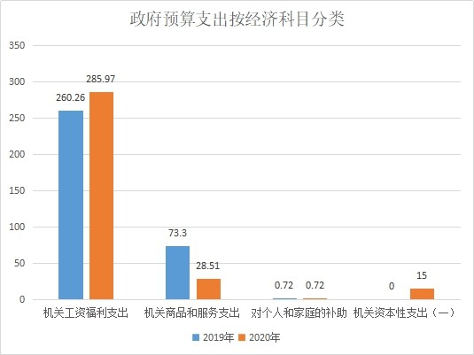 行政运行(2010501)费307.08万元,较2019年284.28万元相比,