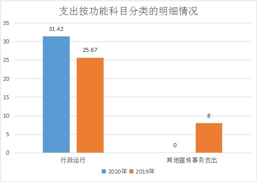 2020年本部门当年一般公共预算拨款支出31.42万元,较上年减少2.25万元,主要原因是本年度全区经费压减,财政未预算专项业务经费。