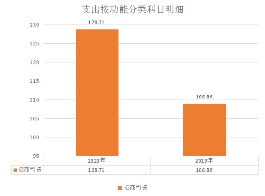 招商引资(2011308)128.71万元,较上年108.86万元增加19.85万元,增长18.23%,主要原因一是人员工资正常晋升;二是将原由财政代列的住房公积金、养老保险等配套部分列入本部门预算收入。(如图三)