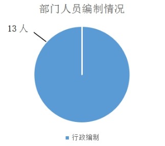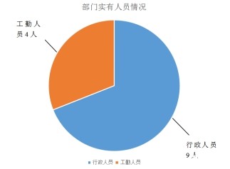 截止2019年底,本部门人员编制13人,其中行政编制13人,事业编制0人;实有人员13人,其中行政9人、工勤4人。单位管理的离退休人员0人。(如图一、图二)
