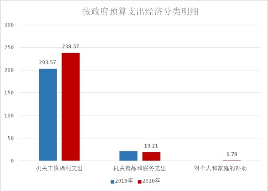 2020年本部门当年一般公共预算拨款支出258.36万元,较上年224.93万元增加33.43万元,增长14.86%,主要原因是人员增资以及划拨单位配套养老保险、医保金所致。