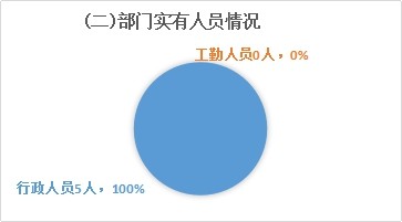 截止2019年底,本部门人员编制6人,其中行政编制5人、工勤编制1人;实有人员5人,其中行政5人。单位管理的退休人员0人。