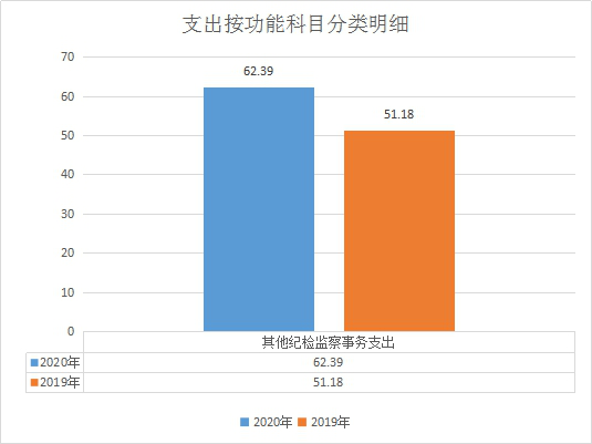 其他纪检监察事务支出(2011199)62.39万元,较上年51.18万元增加11.21万元增长17.97%,主要原因是由于机构改革后编制和人员增加。