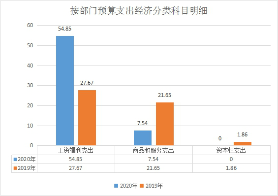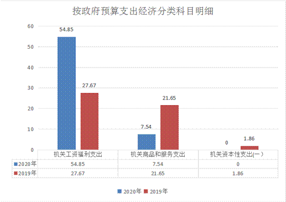 2020年本部门当年一般公共预算支出62.39万元,其中:机关工资福利支出(501)54.85万元,较上年27.67万元增加27.18万元,主要原因是由于机构改革后编制和人员增加。