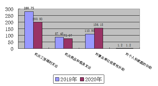 2020年本部门当年一般公共预算拨款支出369.40万元,较上年增加了63.95万元,主要原因一是人员增加及工资调标;二是专项工作任务增加,从而专项经费增加;三是将上年财政代列的在职医疗和养老补贴、住房公积金等单位配套部分列入本部门人员经费预算。