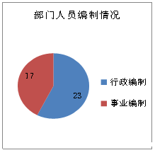 截止2019年底,本部门人员编制40人,其中行政编制23人、事业编制17人。实有人员36人,其中行政20人、事业16人。遗属人员3人。离退休人员已交养老办统一管理。