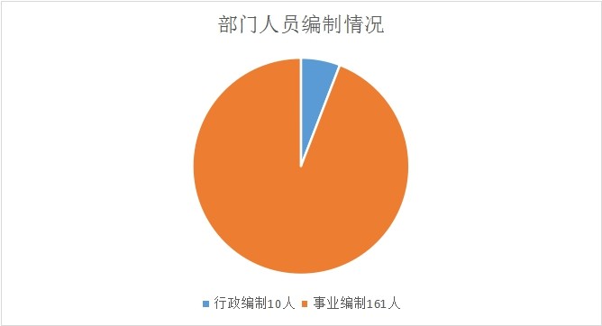 本部门人员编制171人,其中行政编制10人、事业编制161人。实有人员162人,其中行政1人、事业161人。单位管理的离退休人员36人。