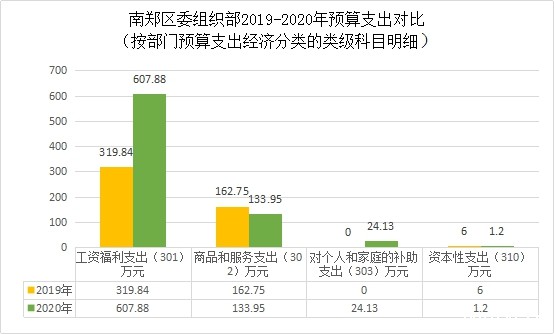 工资福利支出(301)607.88万元,较上年319.84增加288.04万元,原因是机构改革,人员增加,以及财政预算树形结构变更,2020年预算数据中并入区老干部活动中心、区干休所2个单位的预算数据。