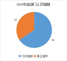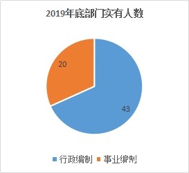 截止2019年底,本部门人员编制67人,其中行政编制44人、事业编制23人;实有人员63人,其中行政43人、事业20人。单位管理的离休人员1人。