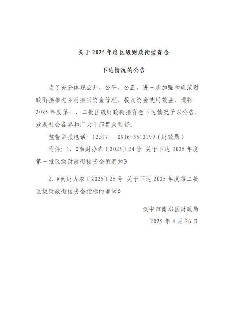 南财办农〔2025〕24号 关于下达2025年度第一批区级财政衔接资金的通知
