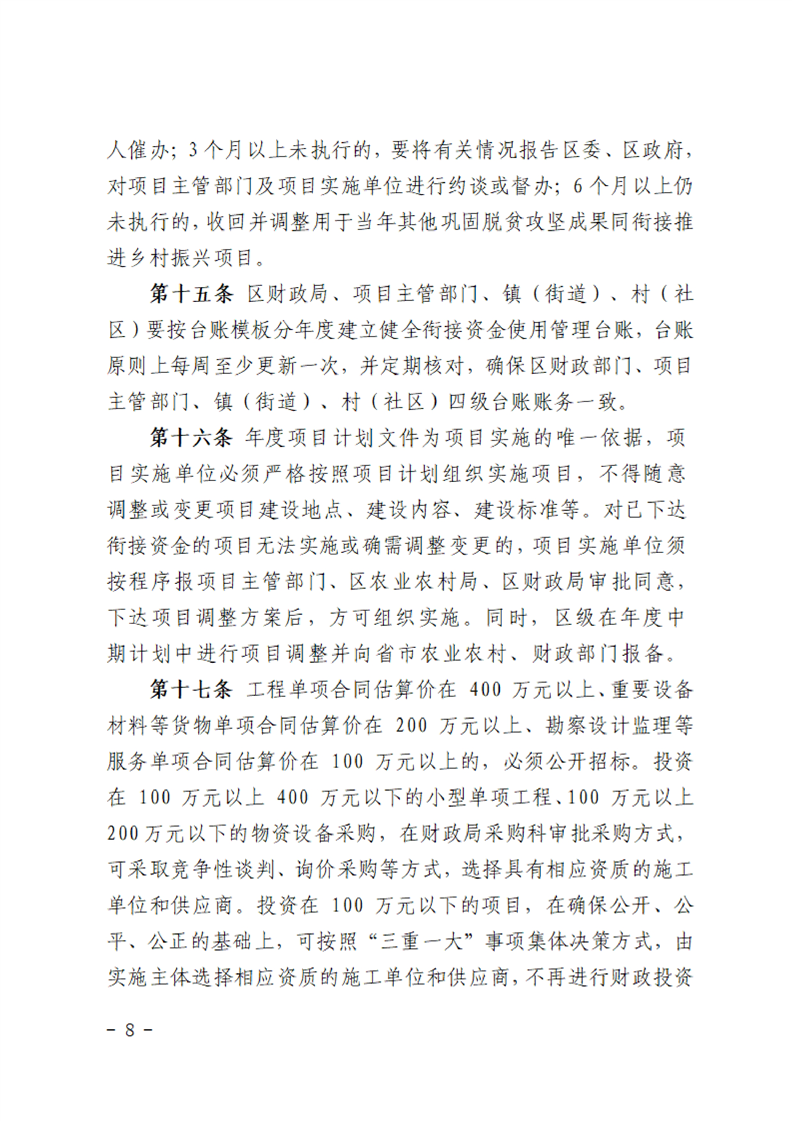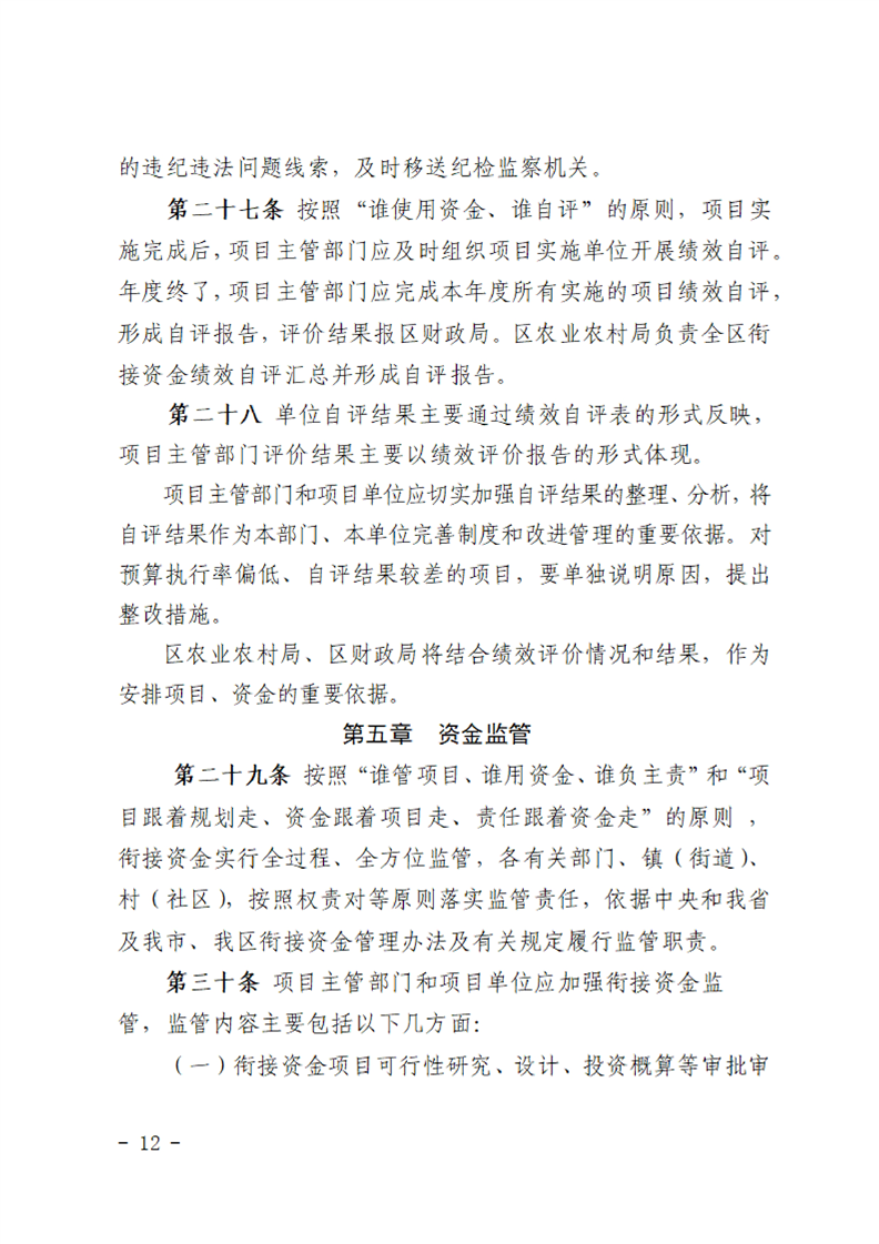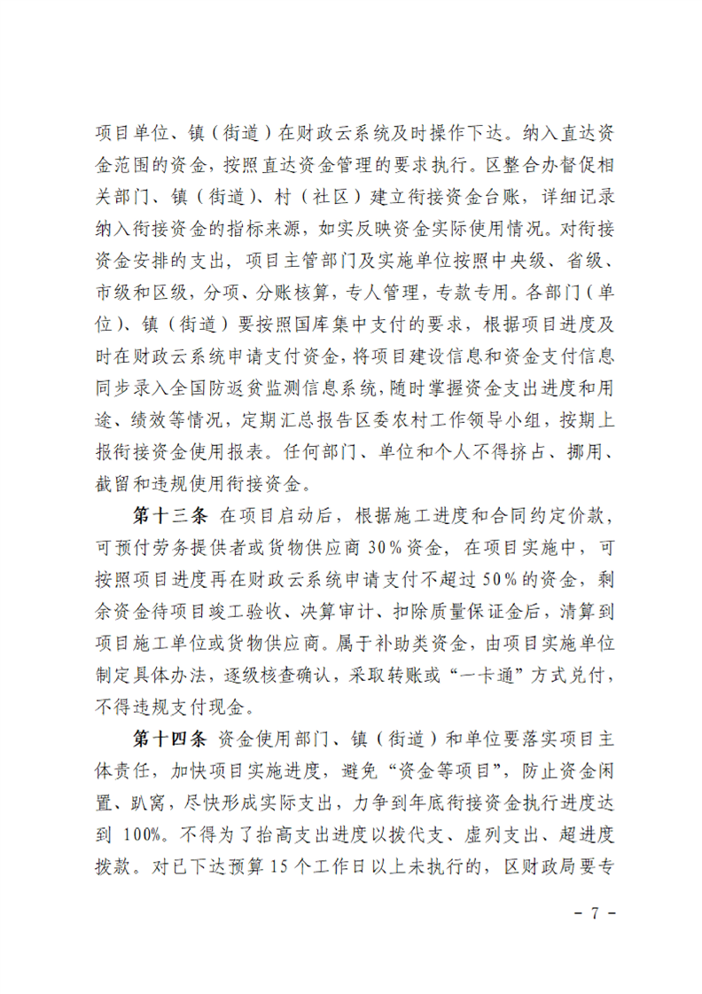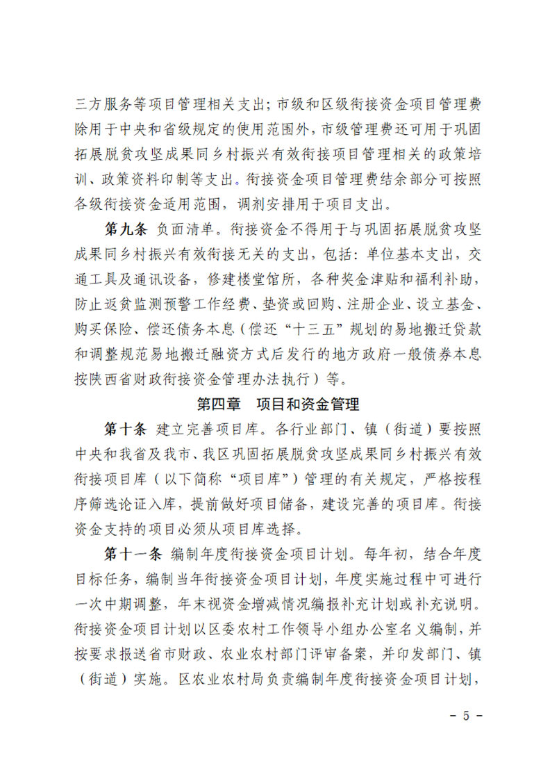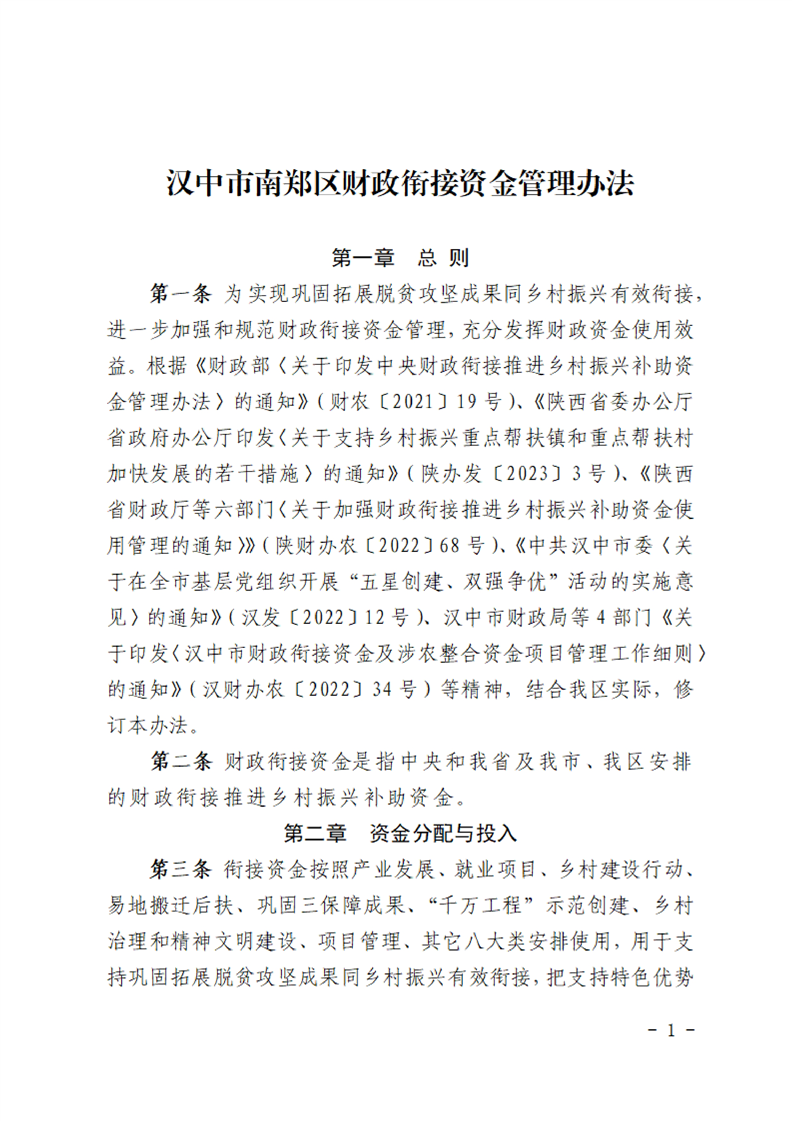 汉中市南郑区财政衔接资金管理办法