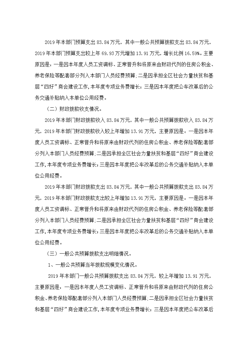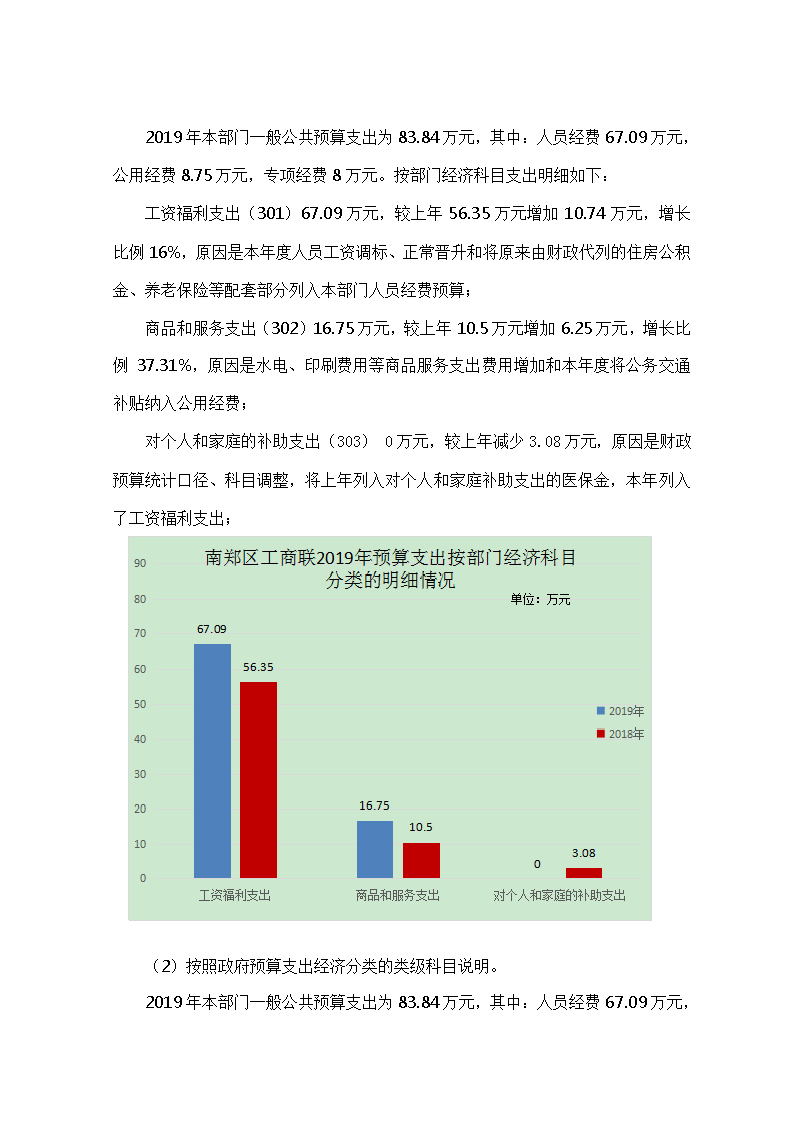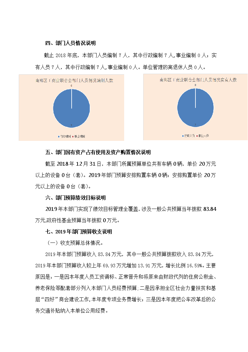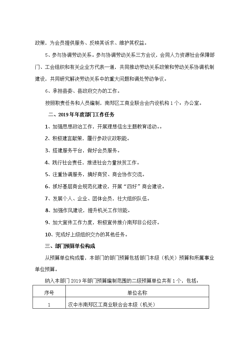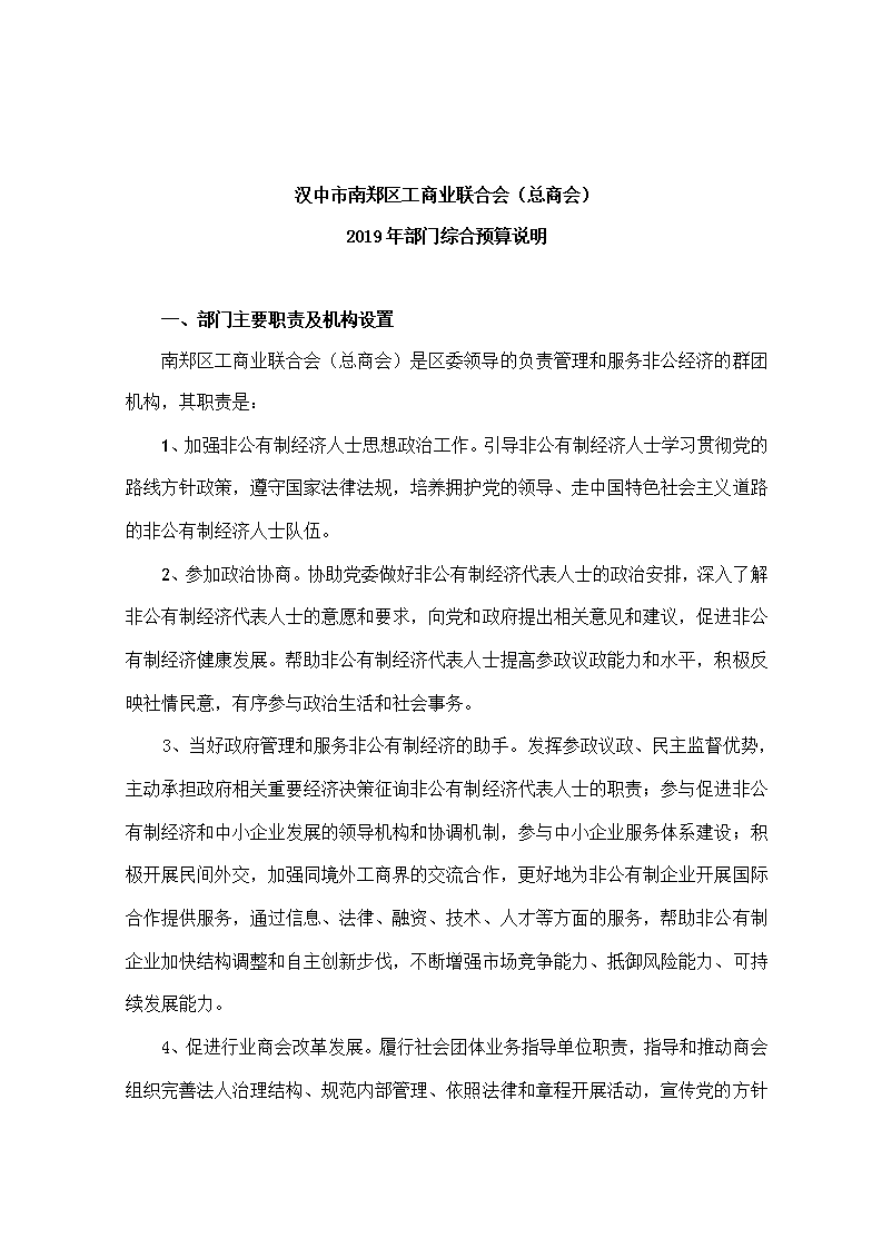 汉中市南郑区工商业联合会(总商会)2019年部门综合预算说明