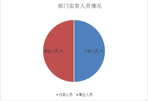 截止2018年底,本部门人员编制31 人,其中行政编制 16人、事业编制 15人;实有人员30人,其中行政15 人、事业 15人。单位管理的离退休人员0人。(如图1、图2)