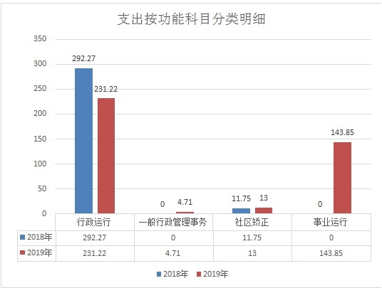 (1)行政运行(公共安全支出2040601)231.22万元,较上年292.27万元减少61.05万元,下降20.89%。原因是2018年区普法教育中心列入行政运行,现规范科目,将区普法教育中心调整为事业运行;
