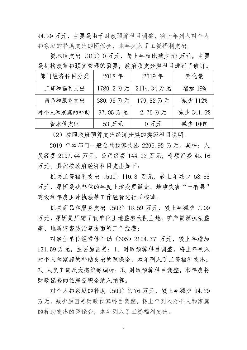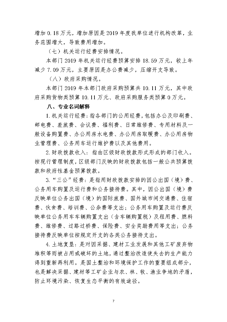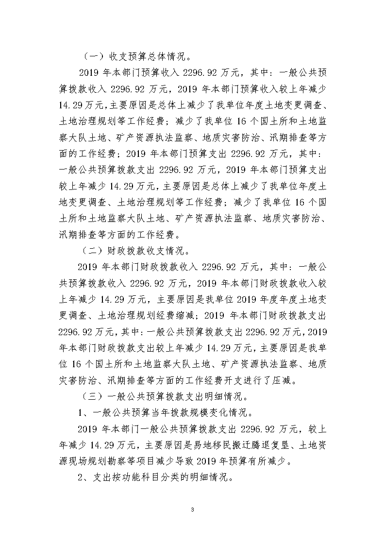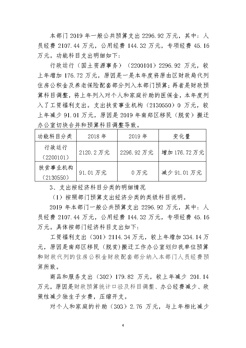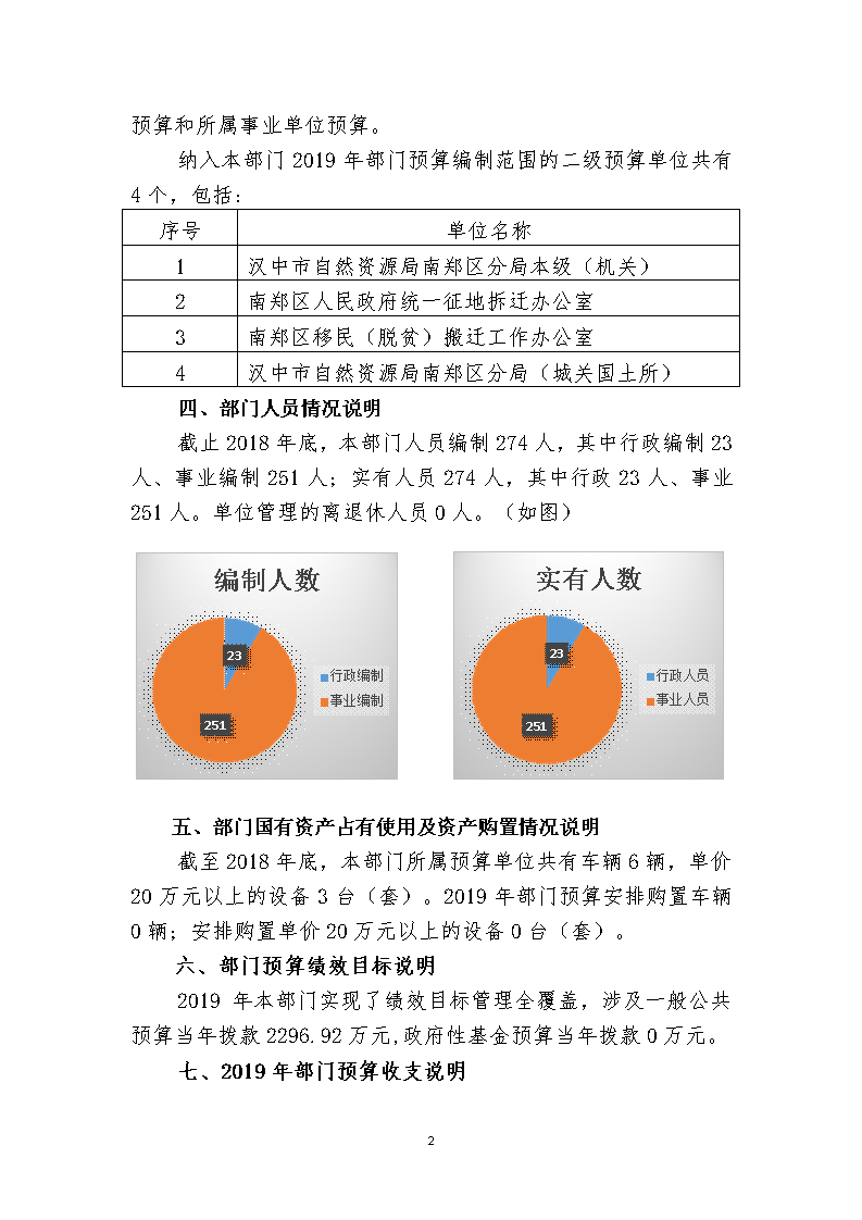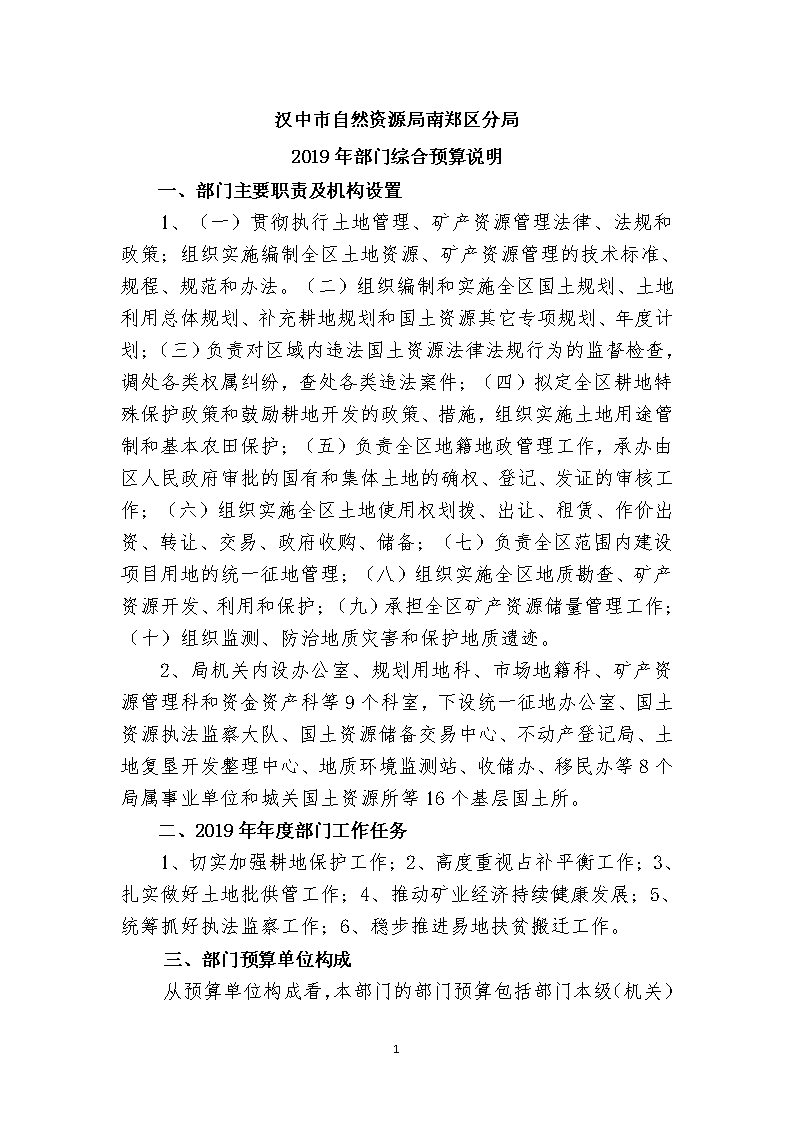 汉中市自然资源局南郑区分局2019年部门综合预算说明