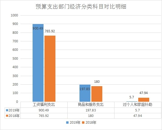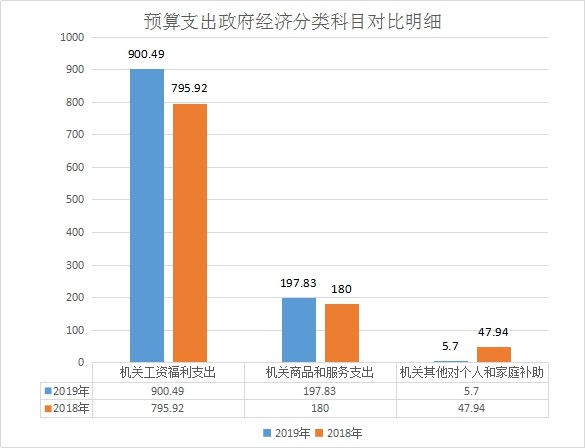 (2)一般行政管理事务(2013802)12.1万元。依据财政部制定的《2019年政府收支分类科目》,组建国家市场监督管理总局,修改相关收支科目,增设“市场监督管理事务”(20138款)科目及相关项级科目,相应删除“工商行政管理事务”(20115款)“质量技术监督及检验检疫事务”(20117款)、“食品和药品监督管理事务”(21010款)科目及其项级科目,故2013802科目无法与2018年部门预算对比;
