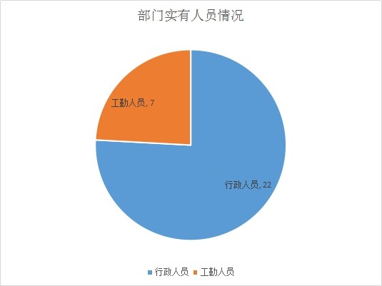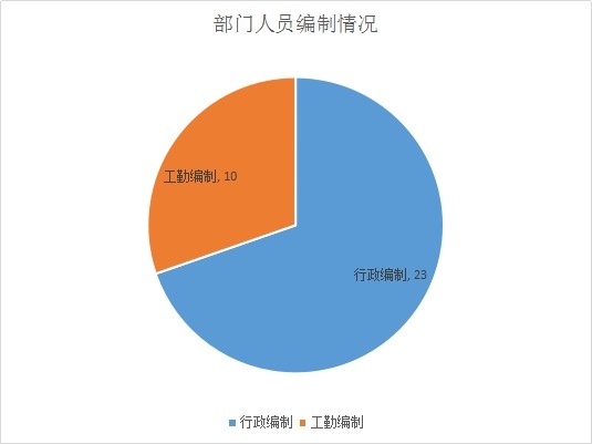 截止2018年底,本部门人员编制33人,其中行政编制23人、工勤编制10人;实有在职人员29人,其中行政22人、工勤7人。