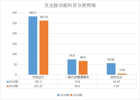 2019年政协机关运行经费预算安排35.11万元,较上年20.5万元增加14.61元,增幅71.27%,主要原因一是虽然我单位按照中省要求压缩了一般性支出且人员减少和公务车辆运行维护费下降,同口径相比减少了7.81万元,但是由于2019年财政预算统计口径及部分科目发生变化,将上年列入人员经费的公务交通补贴,本年列入了公用经费,导致本部门今年机关运行经费增加。