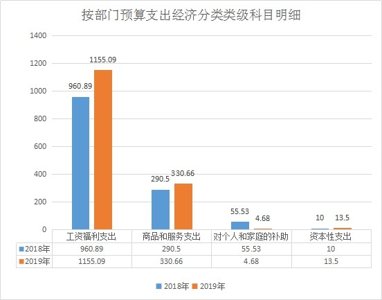2019年本部门一般公共预算支出1503.93万元,其中:人员经费1159.77万元、公用经费91.73万元、专项业务经费252.43万元,具体政府经济科目分类明细如下: