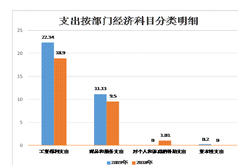 2019年本部门一般公共预算拨款支出33.67万元,较上年增加4.26万元,主要原因:一是人员工资调标、正常晋升;二是将原来由财政代列的住房公积金、养老保险等配套部分列入本部门人员经费预算。