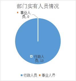 截止2018年底,本部门人员编制11人,其中行政编制11人、事业编制0人;实有在职人员13人,其中行政人员13人、事业人员0人。单位管理的离退休人员0人。