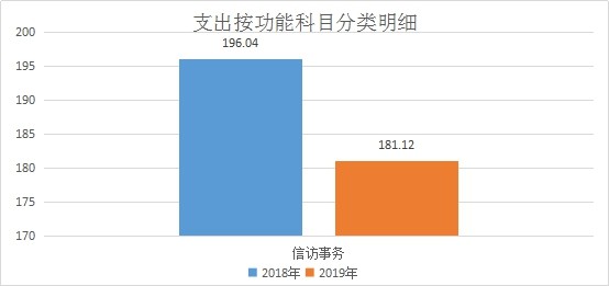 信访事务(2010308)181.12万元,较上年196.04万元减少14.92万元,减少7.6 %,主要原因是压减一般性支出,公用经费减少和专项业务工作、业务经费减少所致。