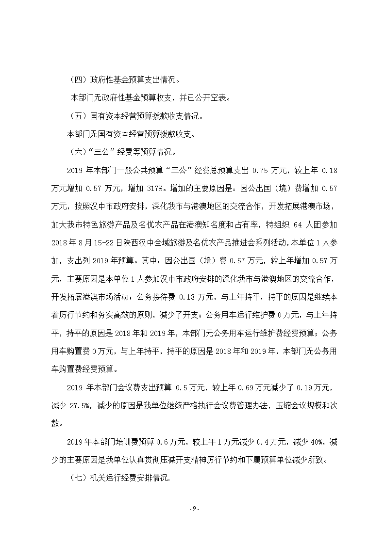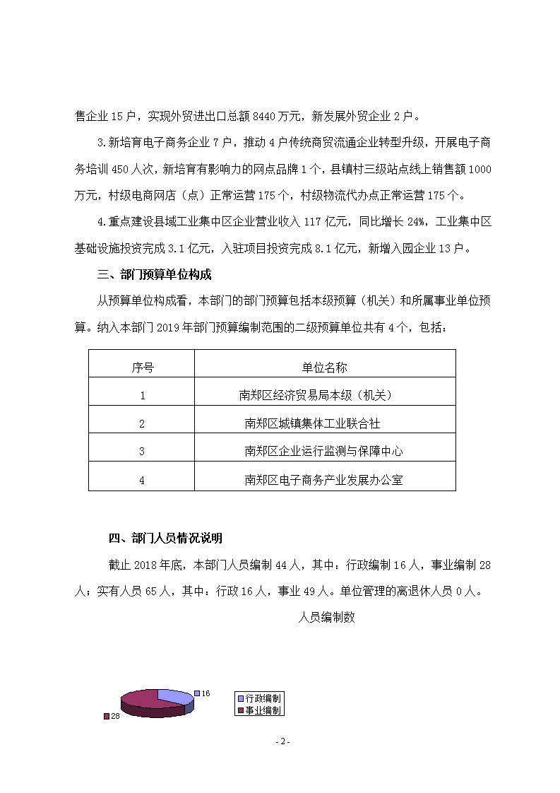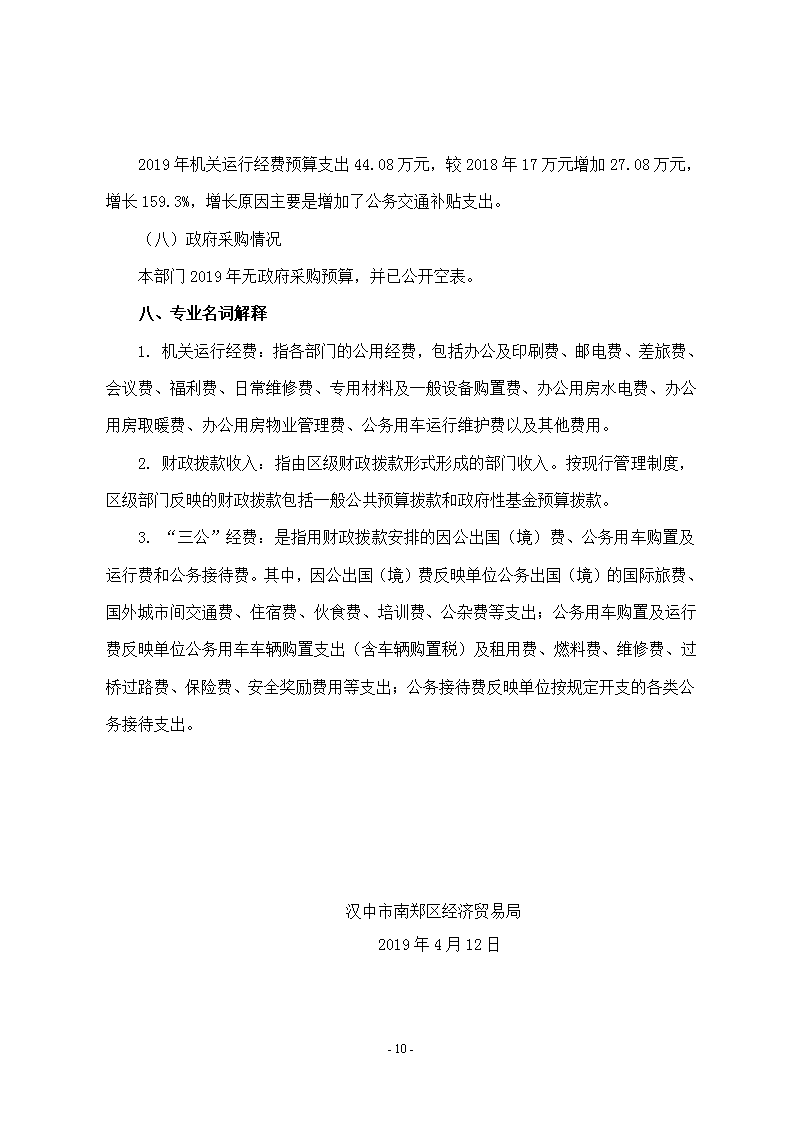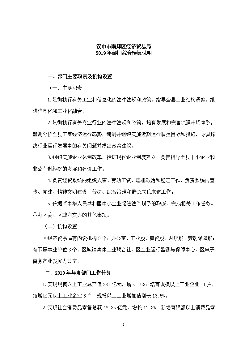 汉中市南郑区经济贸易局2019年部门综合预算说明