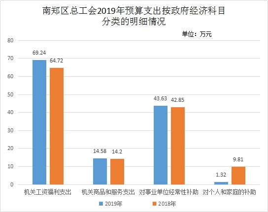 从预算算单位构成看,本部门的部门预算包括总工会本级(机关)预算和所属事业单位南郑区困难职工援助中心预算。