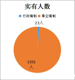 截止2018年底,本部门人员编制1437人,其中行政编制23人、事业编制1414人;实有人员1414人,其中行政23人、事业1391人。单位管理的离休人员1人。