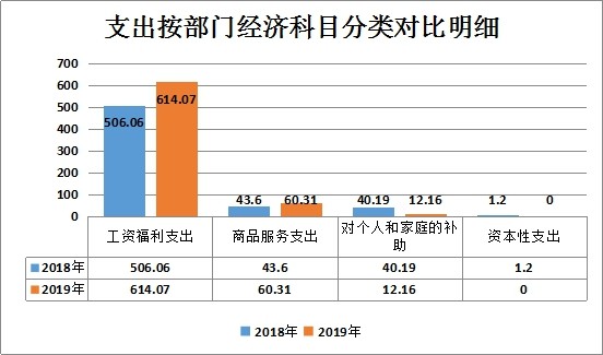 2019年部门财政拨款支出预算合计686.54万元。其中一般公共预算拨款支出686.54万元、政府性基金拨款支出0万元。较上年度财政拨款支出591.05万元相比,增加95.49万元,增长13.9%。其主要原因一是人员工资调整标准和正常晋升等所致。二是本年度将原由财政代列的住房公积金、养老保险财政配套部分纳入本部门人员经费预算。