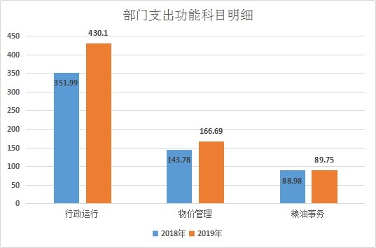 (3)粮油物资储备支出—粮油事务(2220150)89.75万元,较上年88.98万元增加0.77万元,增长0.8%。其主要原因一是军粮供应站今年退休1人和人员工资调整标准和正常晋升等所致。二是本年度将原由财政代列的住房公积金、养老保险财政配套部分纳入本部门人员经费预算。