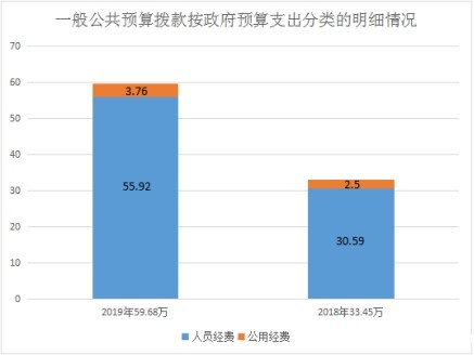 2019年本部门公共预算支出59.68万元,其中人员经费55.92万元,公用经费3.76万元,具体明细科目分类如下: