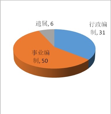 截止2018年底,我镇编制人数59人,其中:行政编制25人,事业编制34人;实有财政供养人员87人,其中:行政人员31人,事业人员50人,遗属6人。