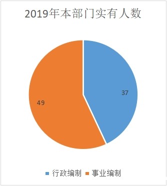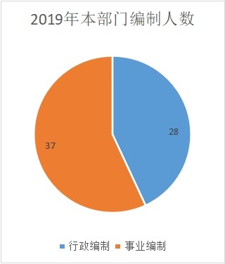 截止2018底,本部门人员编制65人,其中行政编制28人、事业编制37人;实有人员88人,其中行政37人,事业49人,单位管理的离退休人员5人,其中遗属4人,精简1人。