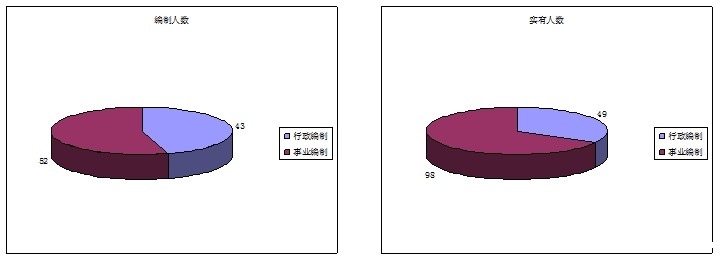如图,截止2018年底,本部门人员编制95人,其中:行政编制43人、事业编制52人;实有人员147人,其中:行政49人、事业98人。单位管理的离休人员1人、遗属17人。
