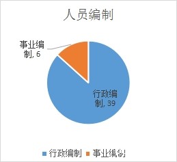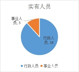 截止2018年底,本部门人员编制45人,其中行政编制39人、事业编制6人;实有人员43人,其中行政38人、事业5人。(如下图一、图二)