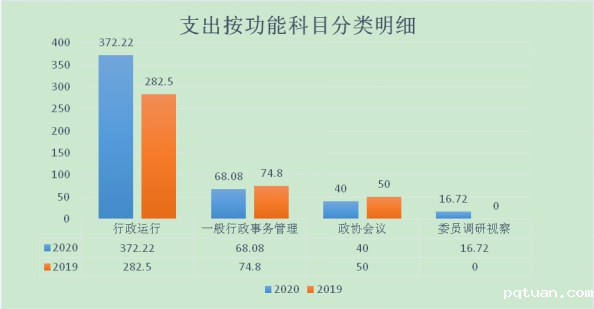 (1)行政运行(政协事务)(2010201)372.22万元,较上年282.5万元相比,增加89.83万元,主要原因一是人员增加和正常晋升;二是将上年财政代列的在职医疗和养老保险配套、公务交通补助、住房公积金等单位配套部分列入本部门人员经费预算。