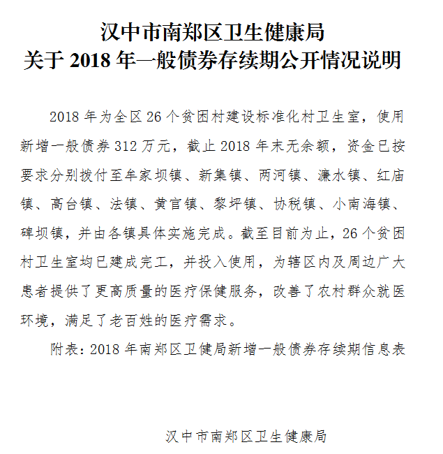 汉中市南郑区卫生健康局关于2018年一般债券存续期公开情况说明