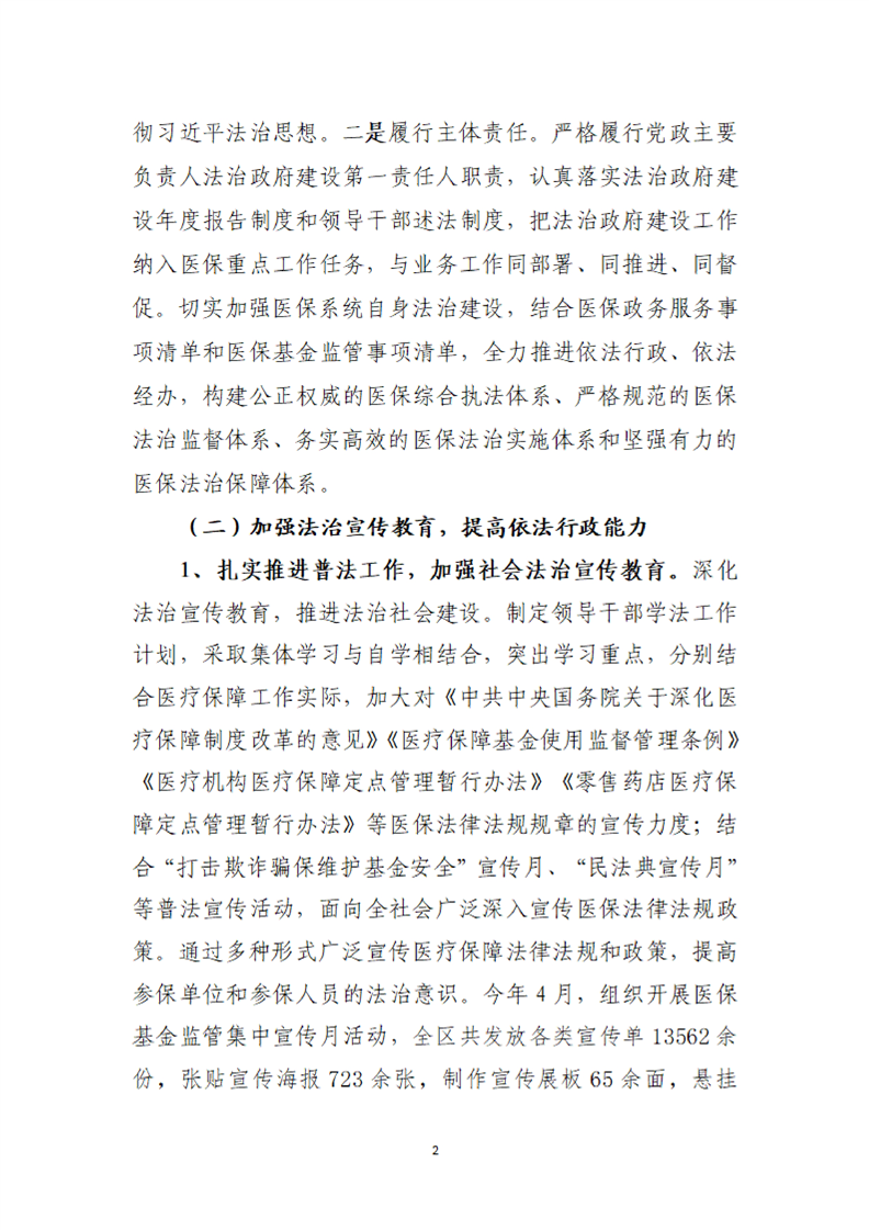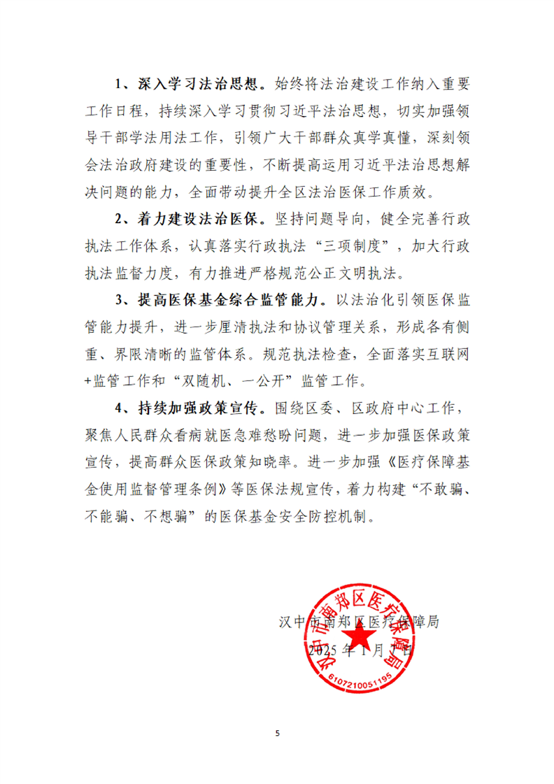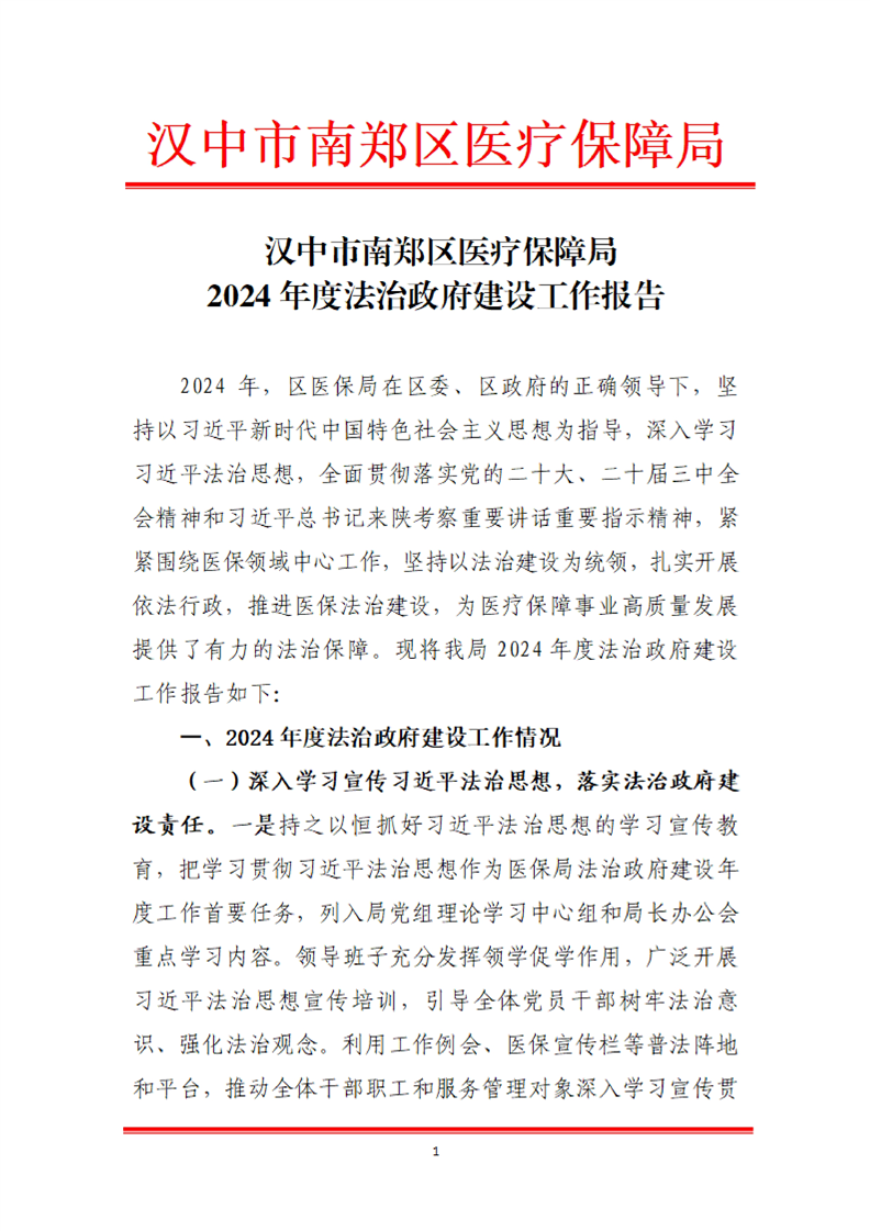 汉中市南郑区医疗保障局2024年度法治政府建设工作报告