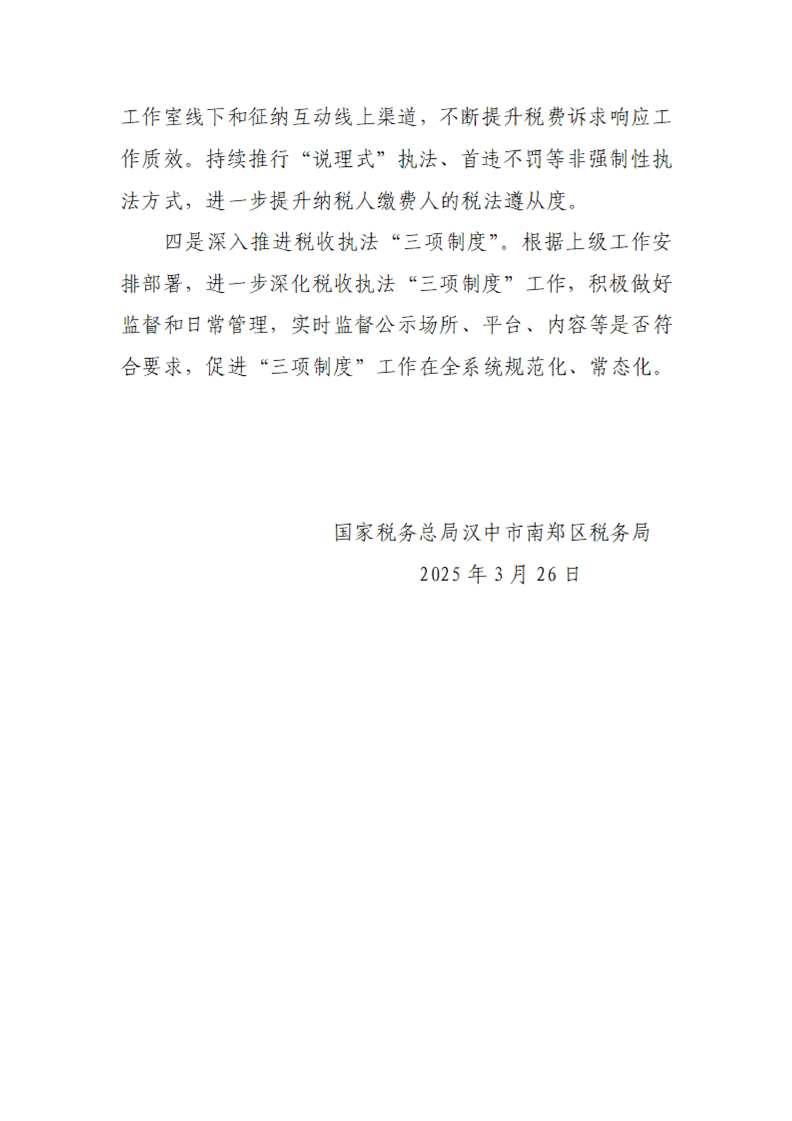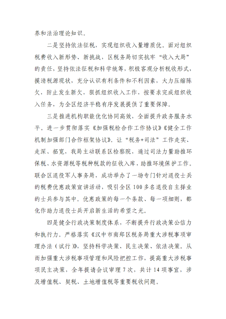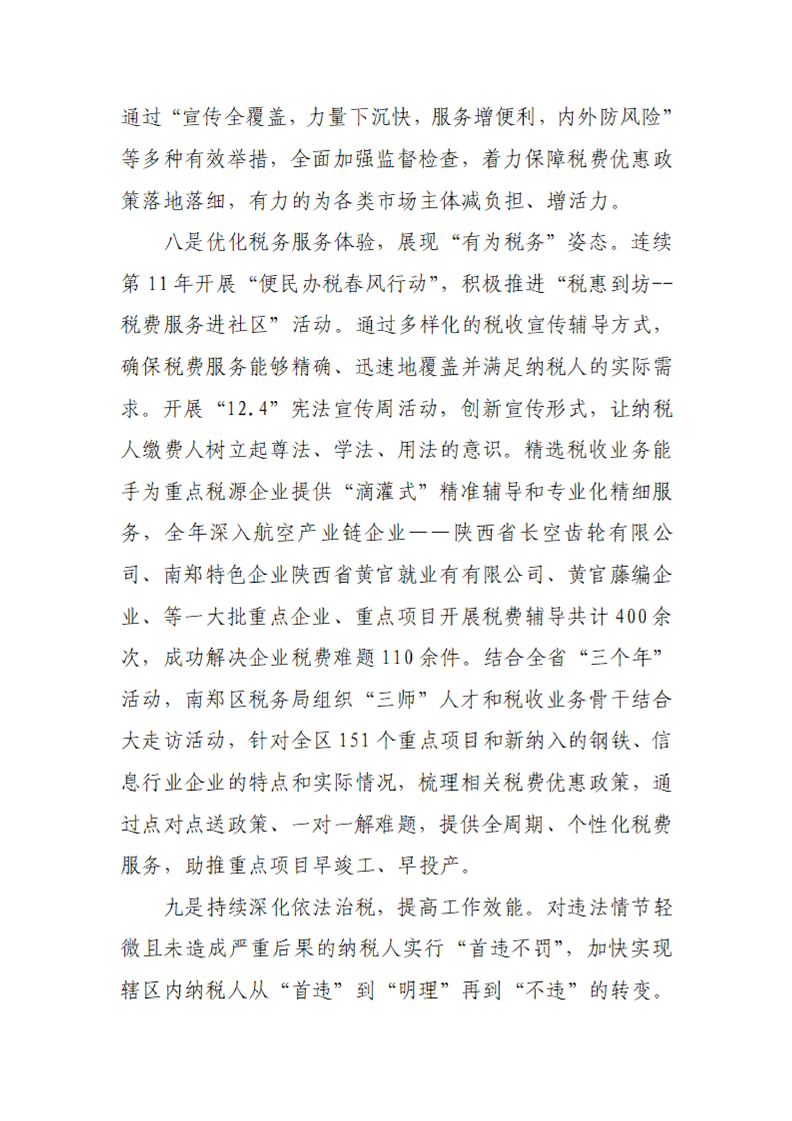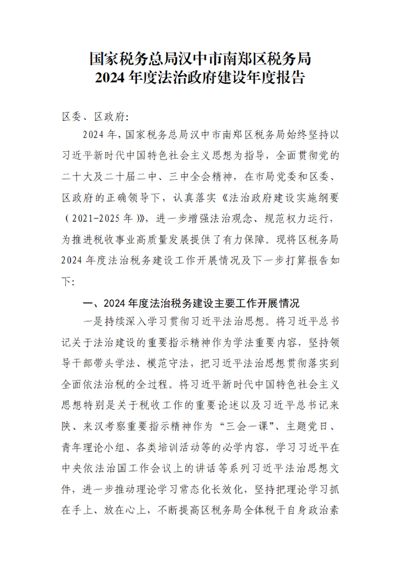 国家税务总局汉中市南郑区税务局2024年度法治政府建设年度报告
