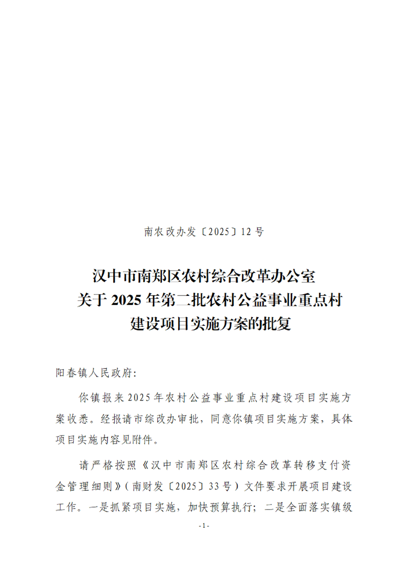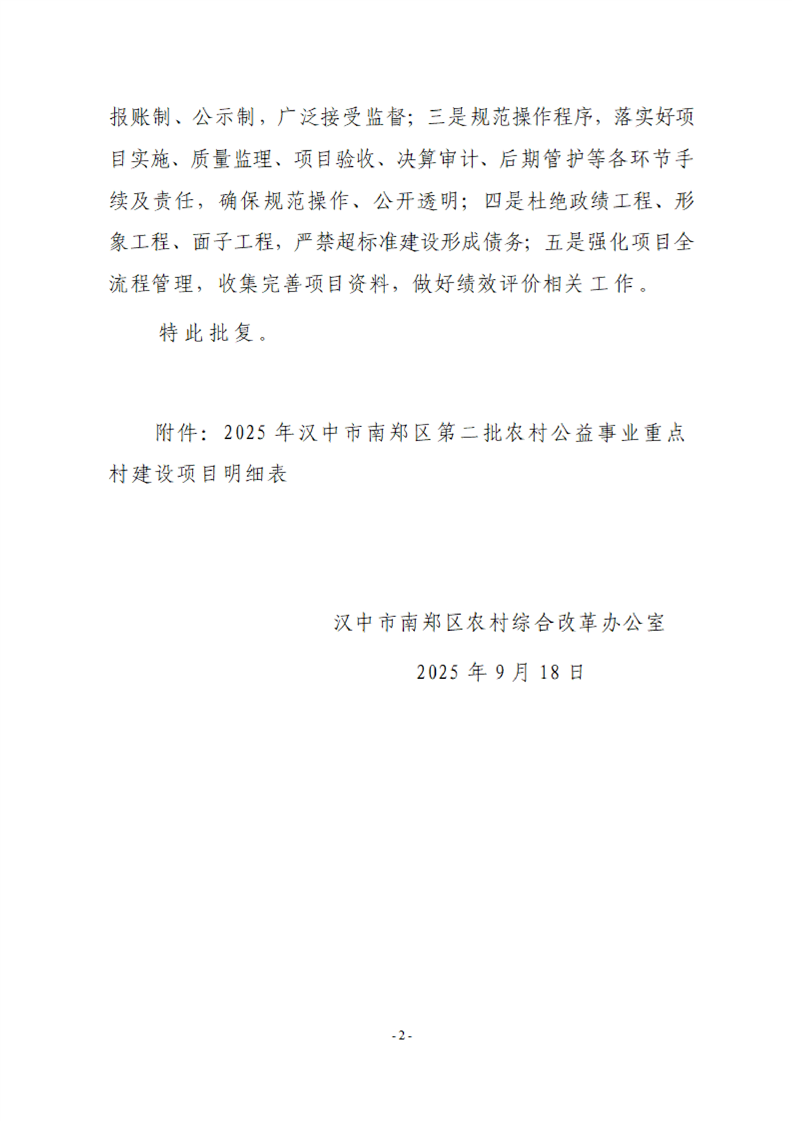 关于2025年第二批农村公益事业重点村建设项目实施方案的批复