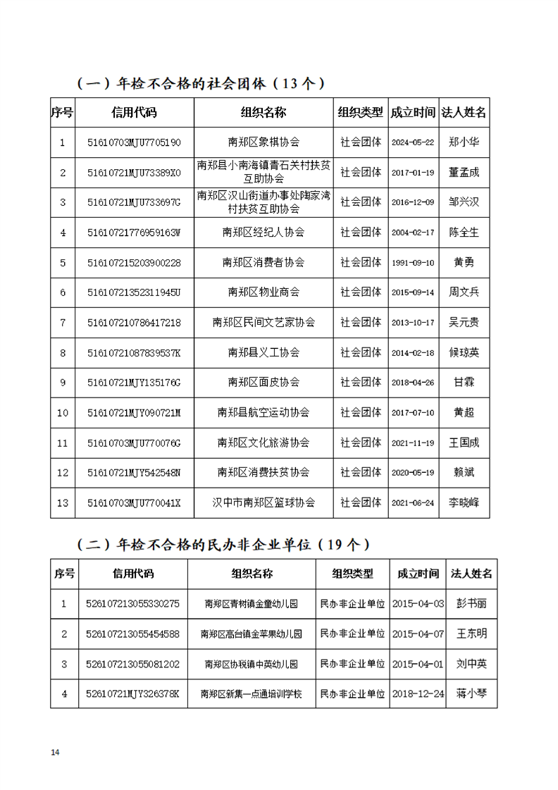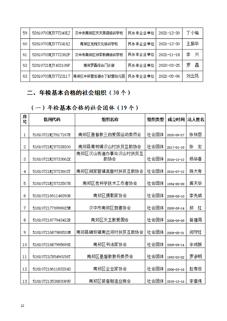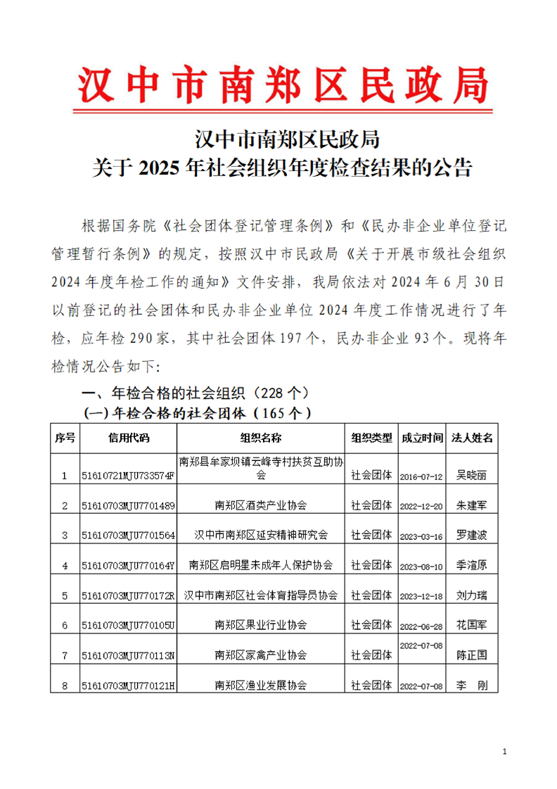 汉中市南郑区民政局关于2025年社会组织年度检查结果的公告