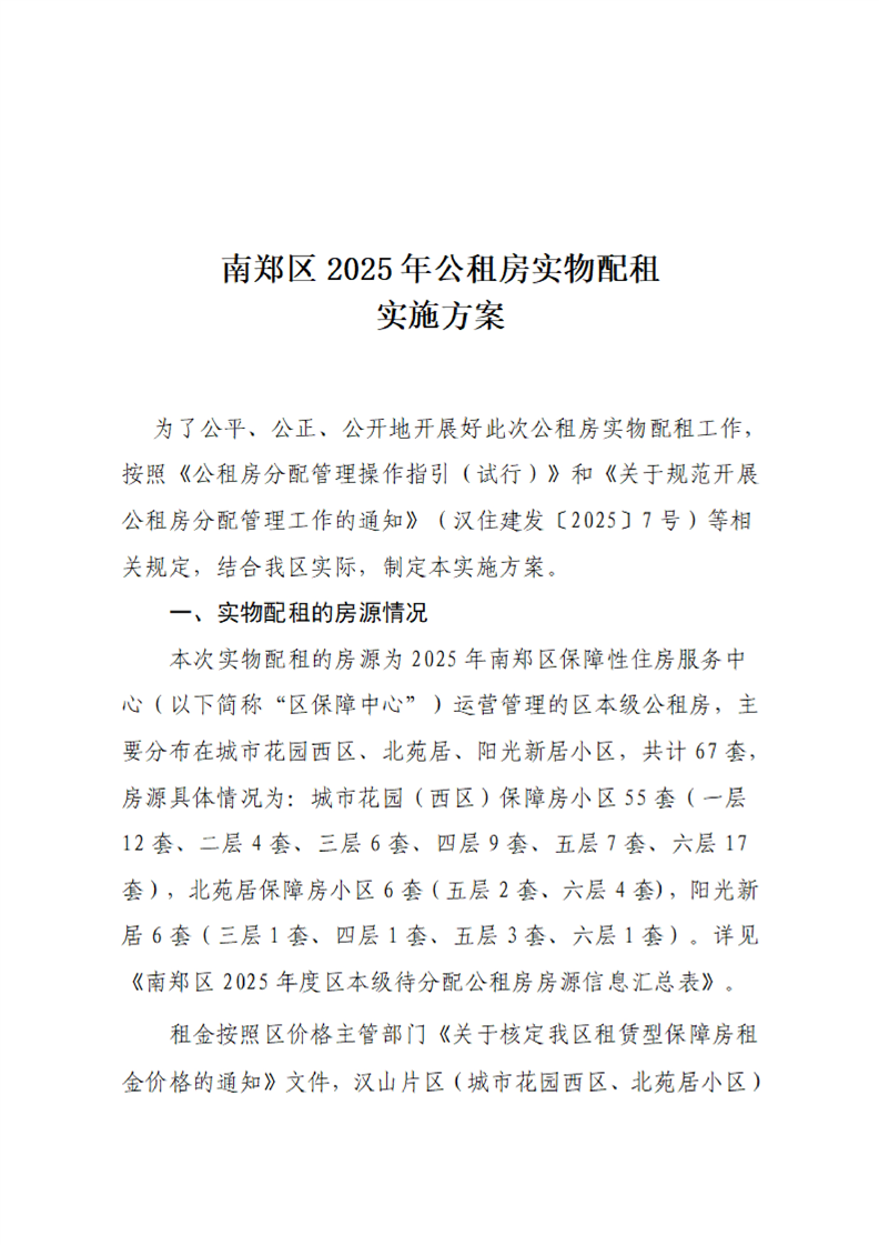 南郑区区本级拟分配公租房房源信息汇总表(公示)