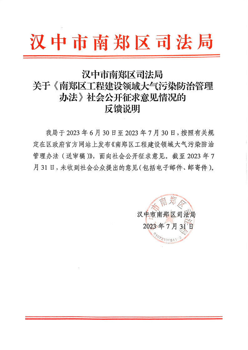 关于《南郑区工程建设领域大气污染防治管理办法》社会公开征求意见情况的反馈说明