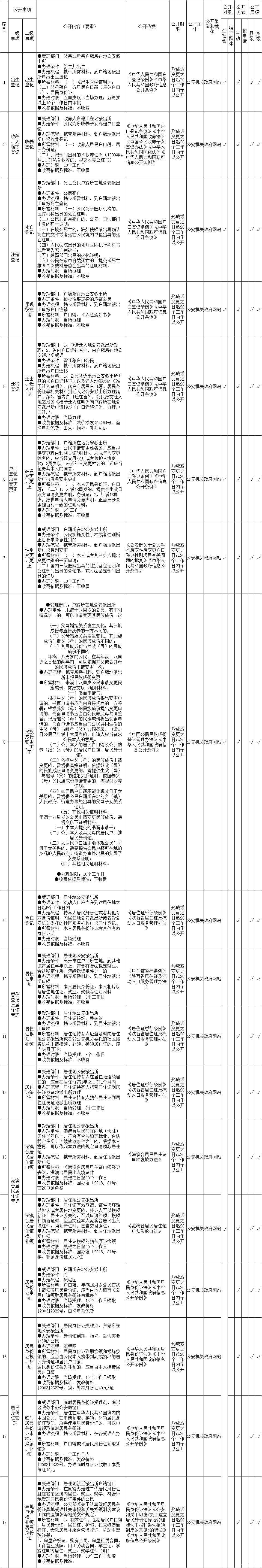 汉中市南郑区户籍管理领域基层政务公开标准目录