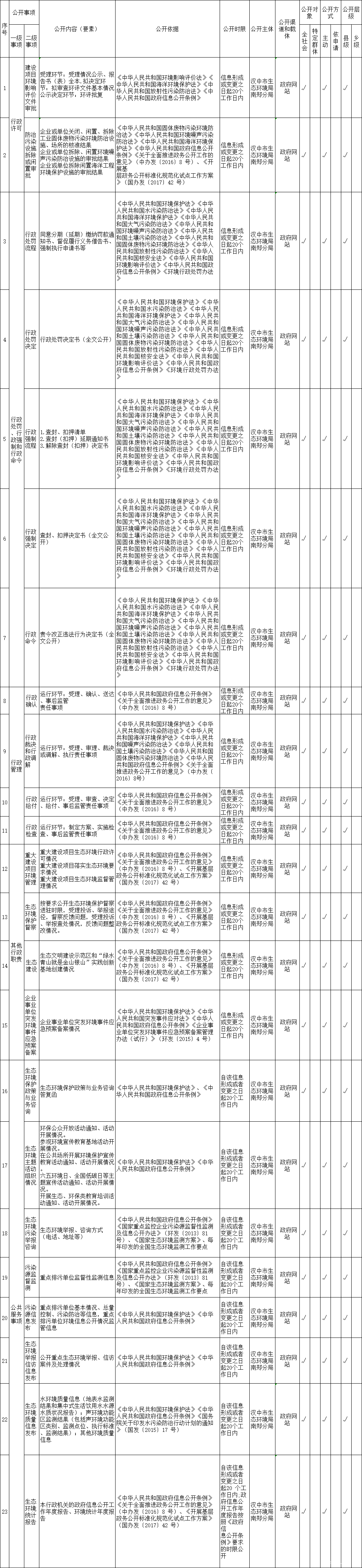 汉中市南郑区生态环境领域基层政务公开标准目录